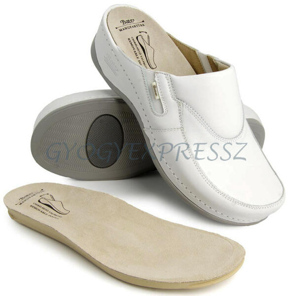 Női bőr klumpa, műanyag csúszásgátlós talppal. A talpbetét puha zselés, bőr. A felsőrész belső oldalán elasztikus textil betét található, melynek köszönhetően nagyon kényelmes viseletet biztosít, kisebb fokú lábdeformitás ( bütyök ) esetén is. Ajánlott mindennapos használatra: otthonra, utcai viseletre és munkahelyre egyaránt ( több órás, szaladgálós munka alat