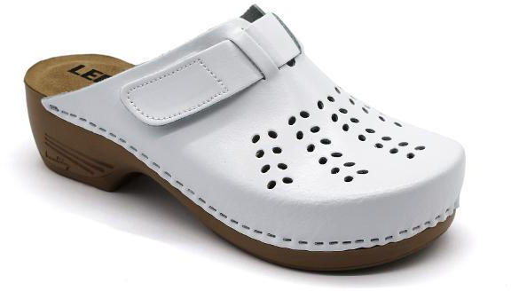 Női bőr klumpa, műanyag talppal. Oldalt tépőzár található, amellyel szabályozni lehet a bőséget. A talpbetét puha, szivacsos bőr. A természetes anyagnak és a felsőrész lyukacsosságának köszönhetően jól szellőzik. Ajánlott: mindennapos utcai használatra, otthonra vagy munkahelyre ( több órás, szaladgálós munka alatt sem fárad el a láb). Méretcm36233723,538243924, 5