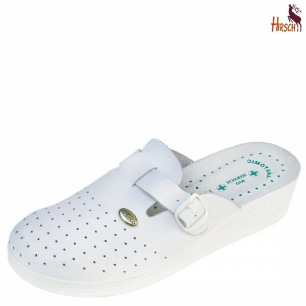 A termék jellemzői: - SRA csúszásmentes talp - kényelmi biopapucs, (klumpa) - fehér vagy kék - bőr felsőrész - sarok magassága: 4,5 cm - a talpbélés puhított, (fussbett) - mérettartomány: 36/41, (42-47) - metrikus méretezés A "HIRSCH BIO" termékek a láb teljes kényelmét szolgálják! A puha anyagú talp rugalmassá teszi a láb talajjal való érintkezését, tompítja a jár