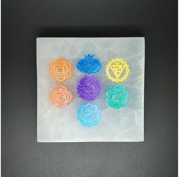 Szelenit négyzet csakra színes 7-8cm Leírás: A szelenit négyzet csakra színes 7-8cm egy kivételes minőségű ásványi tárgy, amely nemcsak spirituális gyakorlatokhoz, hanem otthoni dekorációként is tökéletes választás. A természetes szelenit ásvány harmonikus energiát sugároz, amely hozzájárul a belső nyugalom megteremtéséhez és az otthoni tér esztétikus megjelenés