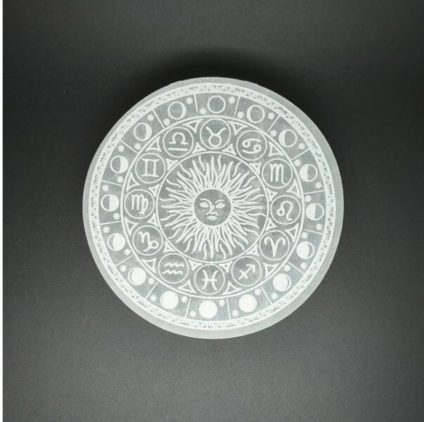 Szelenit korong zodiákus nap hold 7-8cm Leírás: A szelenit korong zodiákus nap hold 7-8cm egy kivételes minőségű ásványi tárgy, amely nemcsak spirituális gyakorlatokhoz, hanem otthoni dekorációként is tökéletes választás. A természetes szelenit ásvány harmonikus energiát sugároz, amely hozzájárul a belső nyugalom megteremtéséhez és az otthoni tér esztétikus megjelen