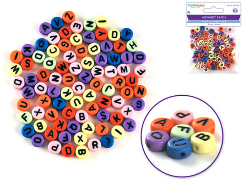 Betű gyöngyök, színes, kerek, 7mm-es, 90db/csomag