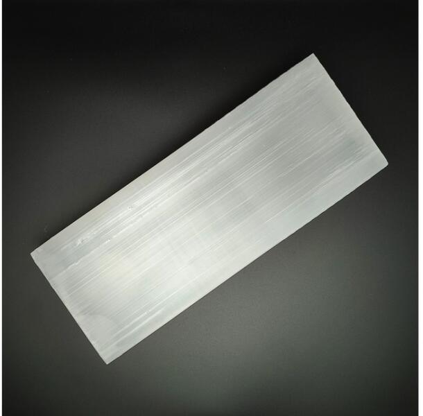 Szelenit téglalap 10x25cm Leírás: A szelenit téglalap 10x25cm egy kivételes minőségű ásványi tárgy, amely nemcsak spirituális gyakorlatokhoz, hanem otthoni dekorációként is tökéletes választás. A természetes szelenit ásvány harmonikus energiát sugároz, amely hozzájárul a belső nyugalom megteremtéséhez és az otthoni tér esztétikus megjelenéséhez. Főbb jellemzők: