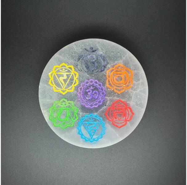 Szelenit korong csakra színes 8cm Leírás: A szelenit korong csakra színes 8cm egy kivételes minőségű ásványi tárgy, amely nemcsak spirituális gyakorlatokhoz, hanem otthoni dekorációként is tökéletes választás. A természetes szelenit ásvány harmonikus energiát sugároz, amely hozzájárul a belső nyugalom megteremtéséhez és az otthoni tér esztétikus megjelenéséhez. F