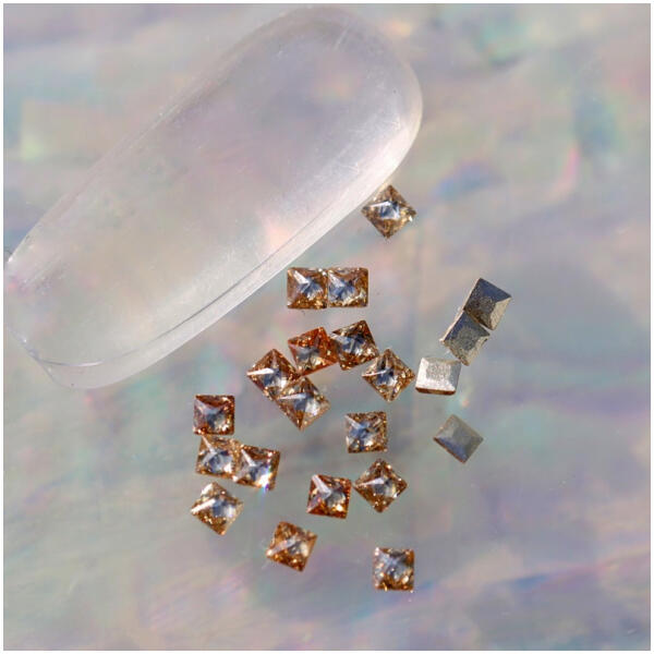 Mini cirkónia kristály formakő Light Colorado Topaz színben, négyzet formában. Majdnem teljesen lapos aljuk könnyen beépíthetővé teszi felhasználásukat, fényerejük sokkal szikrázóbb az általános strasszkövek csillogásánál.