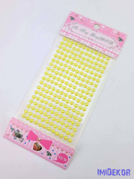 A csomag tartalma kb 260db egyesével tapadó 4mm átmérőjű félkör gyöngy.