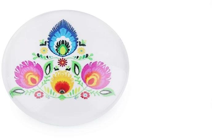 Üveg kaboson. Kerek, üveg bross mandala mintával. Ragasztható vagy felvarrható. Ragasztáshoz ékszerragasztót használnjunk. Átmérő: 25 mm Vastagság: 6.5 mm Összetétel: üveg