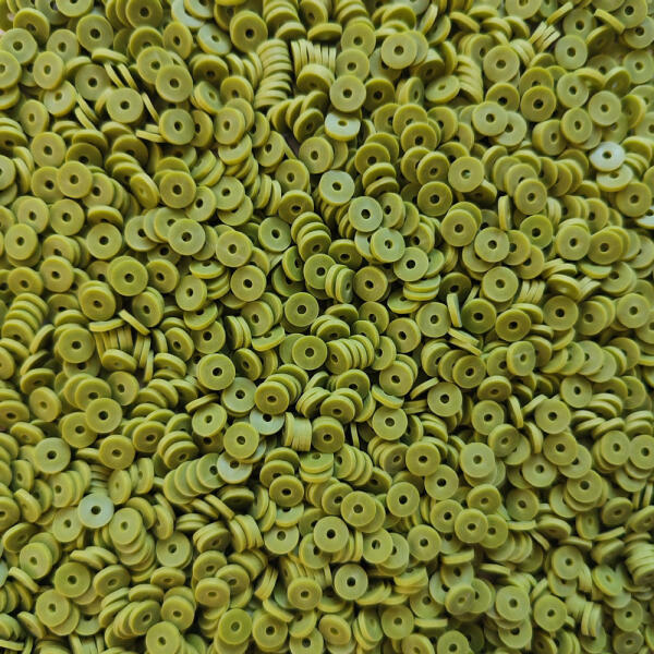 Kekizöld színű polimer lapos gumi gyöngy csomag. A csomag körülbelül 600 db gumi gyöngyöt tartalmaz. Polimer lapos gumi gyöngy csomag 20g/ 600 db - Kekizöld Kekizöldű Polimer lapos gumi gyöngy csomag. 20 g-os kiszerelés, ami kb. 600 db lapos gumi gyöngyöt tartalmaz. A lapos gumi gyöngyök környezetbarát és tartós polimer anyagból készültek, világos és selymes textúráva