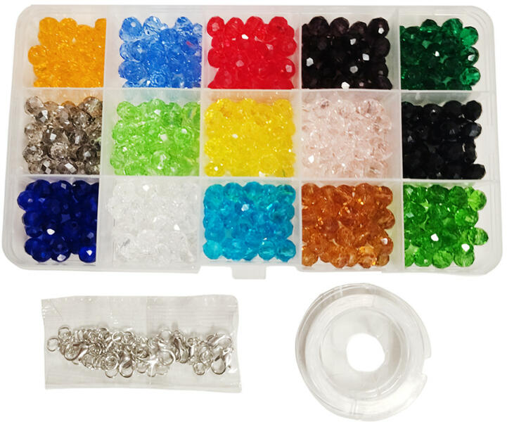 Ez a csiszolt kristálygyöngy karkötő készítő készlet 15 színben tartalmaz minőségi, gyönyörű csiszolt kristály gyöngyöket. Ez a különelges karkötő készítő készlet tartalmaz minden szükséges eszközt és anyagot egy elegáns és egyedi ékszer elkészítéséhez. A praktikus tárolóval rendelkező készlet tökéletes ajándék minden kreatív alkotó tevékenységet ked