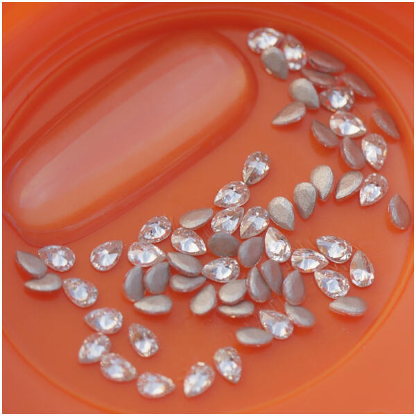 Mini cirkónia kristály formakő Crystal színben, csepp formában. Majdnem teljesen lapos aljuk könnyen beépíthetővé teszi felhasználásukat, fényerejük sokkal szikrázóbb az általános strasszkövek csillogásánál.