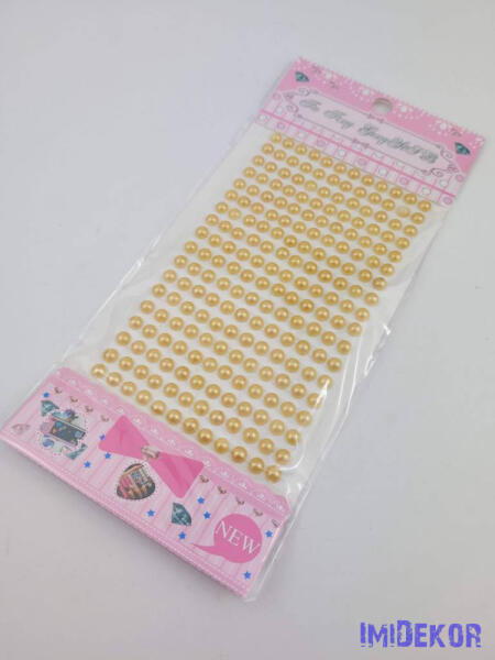 A csomag tartalma kb 260db egyesével tapadó 4mm átmérőjű félkör gyöngy.