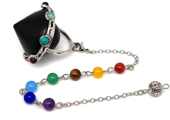 Obszidián lánc inga (kúp chakra Kína Inga) Egyedi ásvány ékszer.