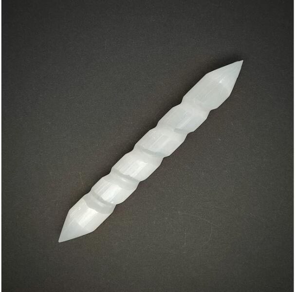 Szelenit masszírozó dupla csúcs spirál 15cm Leírás: A szelenit masszírozó dupla csúcs spirál 15cm egy kivételes minőségű ásványi tárgy, amely nemcsak spirituális gyakorlatokhoz, hanem otthoni dekorációként is tökéletes választás. A természetes szelenit ásvány harmonikus energiát sugároz, amely hozzájárul a belső nyugalom megteremtéséhez és az otthoni tér eszté
