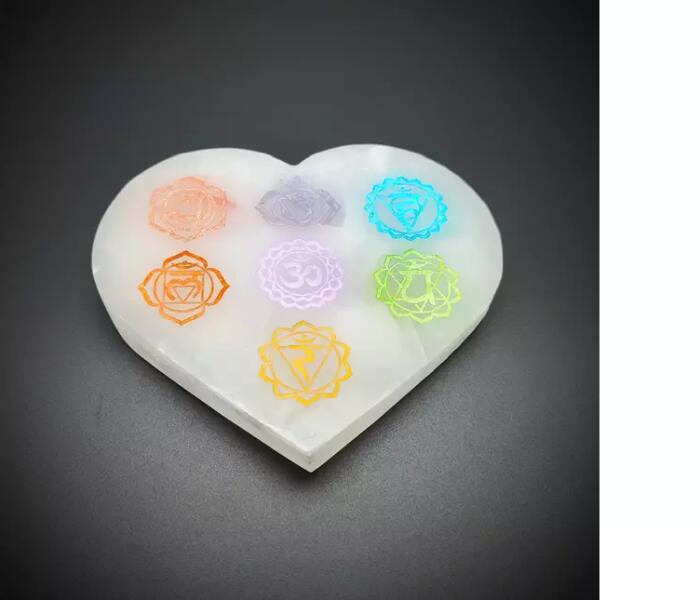 Szelenit szív lapos színes csakra 10cm A Leírás: A szelenit szív lapos színes csakra 10cm a egy kivételes minőségű ásványi tárgy, amely nemcsak spirituális gyakorlatokhoz, hanem otthoni dekorációként is tökéletes választás. A természetes szelenit ásvány harmonikus energiát sugároz, amely hozzájárul a belső nyugalom megteremtéséhez és az otthoni tér esztétikus megj