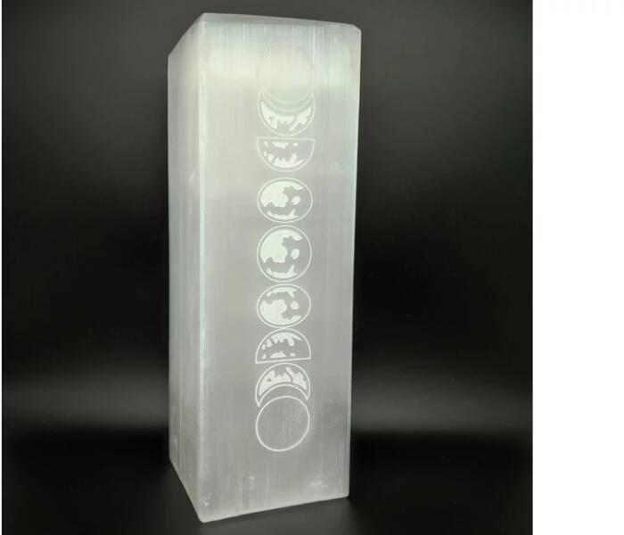 Szelenit lámpa hold hasáb 9x25cm Leírás: A szelenit lámpa hold hasáb 9x25cm egy kivételes minőségű ásványi tárgy, amely nemcsak spirituális gyakorlatokhoz, hanem otthoni dekorációként is tökéletes választás. A természetes szelenit ásvány harmonikus energiát sugároz, amely hozzájárul a belső nyugalom megteremtéséhez és az otthoni tér esztétikus megjelenéséhez. F