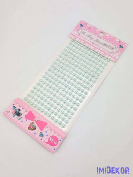 A csomag tartalma kb 260db egyesével tapadó 4mm átmérőjű félkör gyöngy.