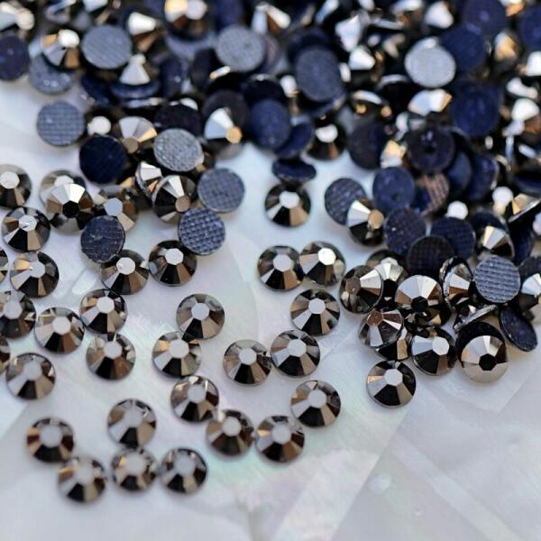Vasalható strasszkő ss16 méretben Jet Hematite - grafit-metál színben. Hőre lágyuló ragasztórétegének köszönhetően tartósan ruhára vasalható. Flatback, hotfix.