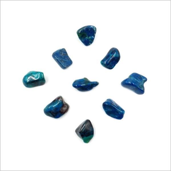Természetes Krizokolla dobcsiszolt marokkő Mérete minimum : 12x20mm A termékfotó valós, de a színe monitoronként eltérő lehet. A krizokollal vélt hatása
