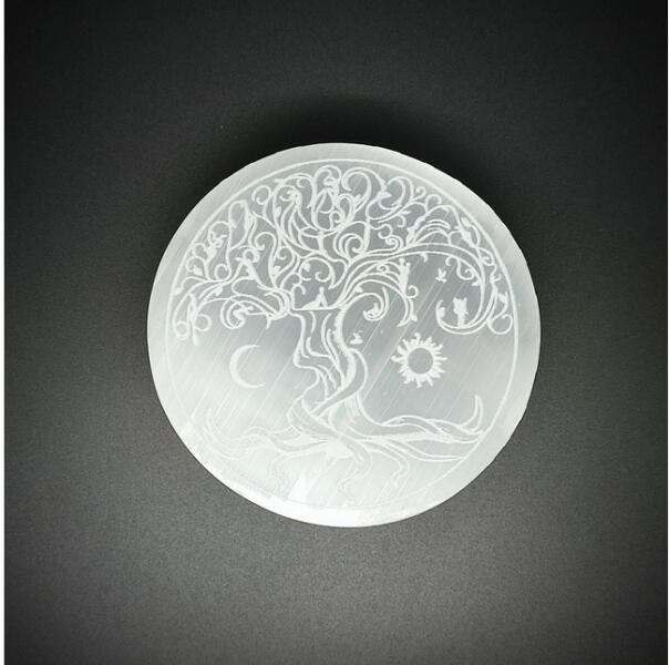Szelenit korong életfa nap hold 8cm Leírás: A szelenit korong életfa nap hold 8cm egy kivételes minőségű ásványi tárgy, amely nemcsak spirituális gyakorlatokhoz, hanem otthoni dekorációként is tökéletes választás. A természetes szelenit ásvány harmonikus energiát sugároz, amely hozzájárul a belső nyugalom megteremtéséhez és az otthoni tér esztétikus megjelenéséhez