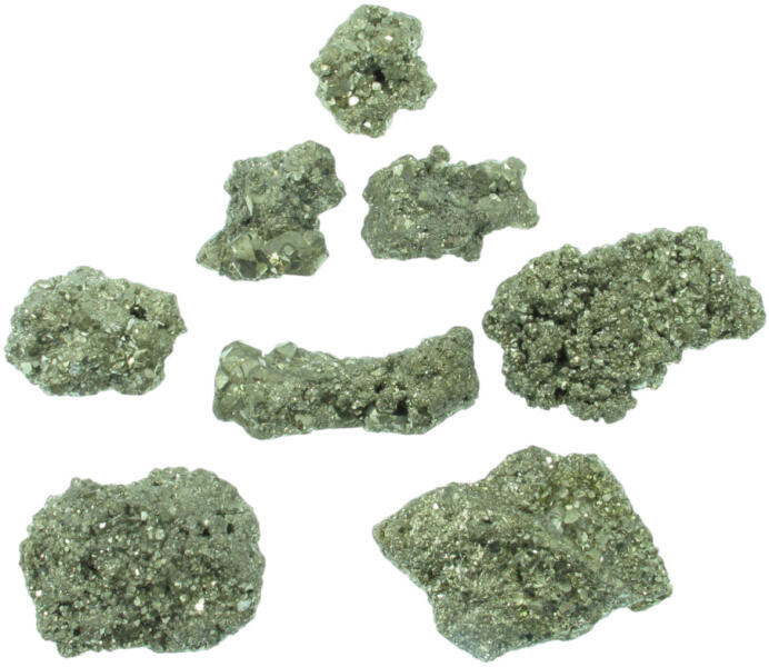 Természetes nyers pirit ásvány rögök. Az ásványok mérete: 25-55mm, 20-60g-os darabok. A kép száma szerint választható, ár a mérettől függ. A pirit vélt gyógyhatása