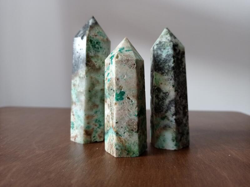 Magasság: 8-10 cm A Főnix-kő , más néven „együttérzés köve, a krizokolla, a malachit és a türkiz kombinációja. Ez az erős kő elősegíti az önmegvalósítást, és megnyitja a szívet a feltétel nélküli szeretet és érzelmi gyógyulás előtt. Felszabadítja a félelmet és a depressziót, kreativitást és érzelmi önkifejezést hoz, erőt és hatalmat kölcsönöz.
