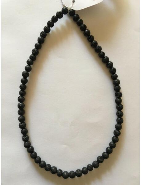 Természetes ásványokból készített (csiszolt) kerek alakú, fúrt Lávakő, fekete ásványgyöngyök. A gyöngyök mérete 6 mm. Egy lánc kb. 37 cm hosszú, és kb. 64 db ásványból áll.