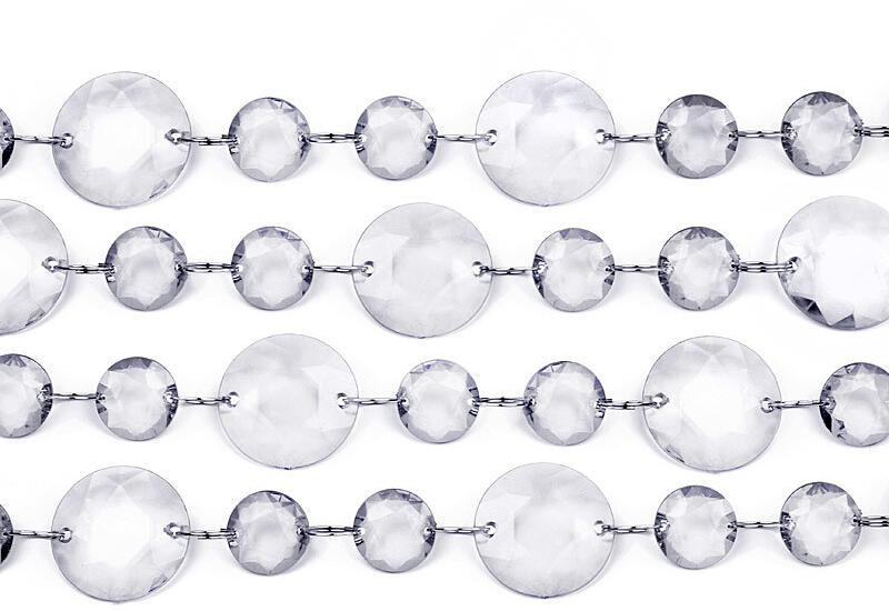 Színtelen kristályfüzér, hossza 1 méter. A kristálygolyók átmérője: kicsi 18 mm, nagy 30 mm.