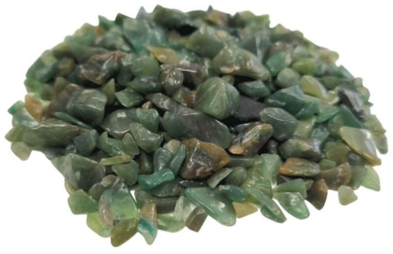 A csomag 100 gramm zöld aventurint tartalmaz. A kövek felhasználhatóak epoxy gyantával vagy viasszal egyaránt. A kövek átlagos mérete: 0.5 - 1.5 cm.