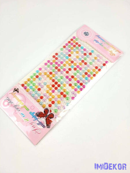 A csomag tartalma kb 260db egyesével tapadó 4mm átmérőjű félkör gyöngy.