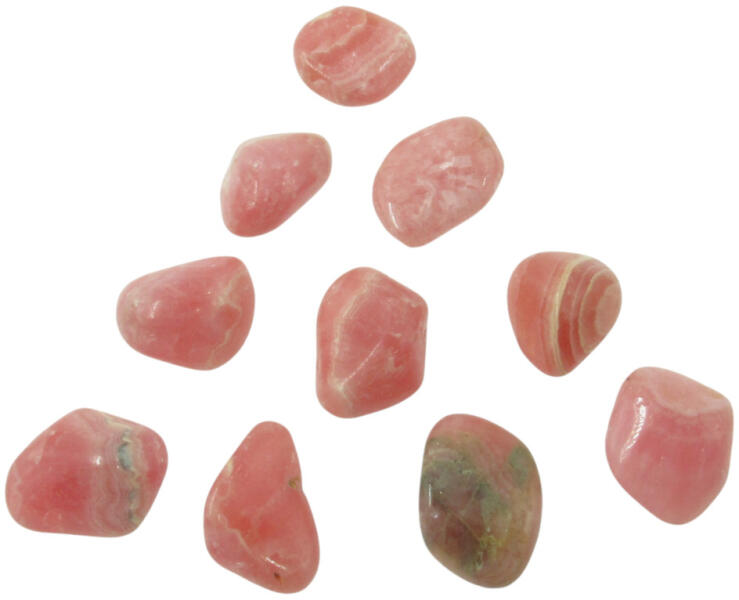 Nagyon szép rózsaszín, kis méretű természetes rodokrozit dobcsiszolt marokkő. A mérete kb. 10-20mm, a lenyíló menüből választható, a képen lévő szám alapján. Súlyuk 1,5-3g A Rodokrozit vélt hatása