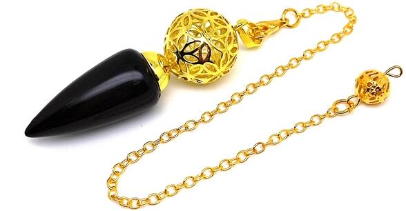 Obszidián inga (kúp arany Kína Inga) Egyedi ásvány ékszer.