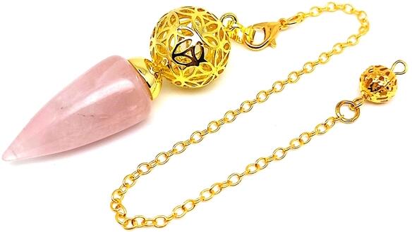 Rózsakvarc inga (kúp arany Kína Inga) Egyedi ásvány ékszer.