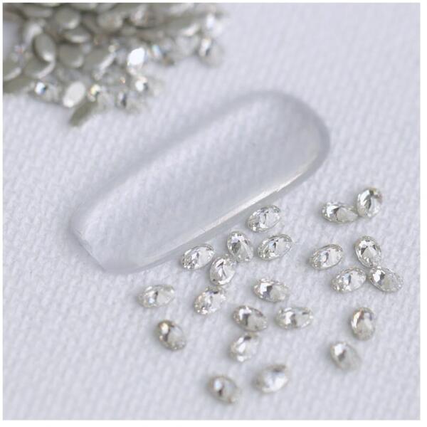 Mini cirkónia kristály formakő Crystal színben ovális formában. Majdnem teljesen lapos aljú, könnyen beépíthető, magas fényerővel, strasszköveknél szikrázóbb csillogással.