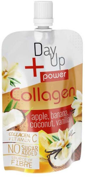A DayUp reggeli a munkába sietőknek, tízórai a gyerekeknek, vagy egy kis nasi délután, de alkalmas egy könnyed energiapótlásnak az edzés után. DayUp + Power Kollagénnel almapüré banánnal, kókusszal, vaníliával, rosttal, kollagénnel és C vitaminnal. Nem tartalmaz hozzáadott cukrot, tejet és glutént. Pasztőrözött. Természetes cukrokat tartalmaz. Felbontás után 2 napig t