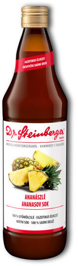 Dr. Steinberger Ananászlé Drs 750 ml A Dr. Steinberger Ananászléhez válogatott, érett ananászt (bromeliaceae) dolgoznak fel. Az ananászt meghámozzák és a teljes gyümölcsöt kíméletesen feldolgozzák. Ennek következtében az Ananászlé tartalmazza a gyümölcs értékes alkotóelemeit, így magát a gyümölcs húsát is. Különlegesen frissítő hatású. Lékúrához is ajánlot