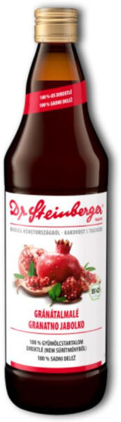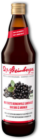 Dr. Steinberger Bio Feketeberkenyelé Drs 750 ml100%-os, első préselésből kinyert direktlé. Kelet-Európa legjobb bio termőterületeiről, gondosan válogatott, illatos fekete berkenyét dolgoznak fel a gyártó üzemben és varázsolják kiváló minőségű gyümölcslévé. A gyümölcsöket csak egyszer préselik, így valóban tiszta direktlé kerül az üvegekbe, ami megőrzi a fekete