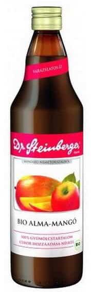 Dr. Steinberger BIO alma-mangó gyümölcslé: Kivételes ízélmény és egészségmegőrző hatás egy palackban. Gazdag A-, B-, E- és K-vitaminokban, antioxidánsokban és ásványi anyagokban. Természetes összetevőkkel támogatja az emésztést és a szív egészségét.