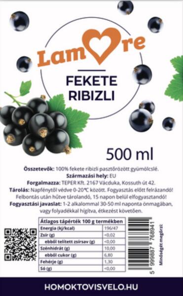 A fekete ribizli lé minden hozzáadott anyagtól mentes, tartósítószert nem tartalmaz. Gyümölcsleveink kíméletes eljárással pasztőrözve készülnek, hogy az a lehető legtöbb vitamin és beltartalmi értékét megőrizze. Felbontás nélkül a minőség megőrzési idő 1 év. Felbontás után hűtőben 15 napig megőrzi minőségét. Felbontás és fogyasztás előtt felrázandó! Fe