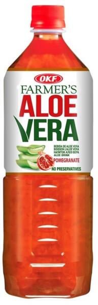 OKF gránátalmás aloe vera ital 1L Hivatalos magyarországi forgalmazótól. Összetevők: Víz, gránátalmalé (20%), Aloe vera lé (14%), Aloe pép (6%), cukor, savanyúságot szabályozó anyag (E330-citromsav, nátrium-citrát), stabilizátor (kalcium-laktát, gelleán gumi), Szőlőaroma, Édesítőszer (szukralóz), Tápértékre vonatkozó adatok: Átlagos tápérték 100g termékben: En