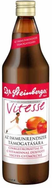A Dr. Steinberger Vitesse egy prémium minőségű, cinkglükonnal és C-vitaminnal dúsított gyümölcslé, amely alma, mangó és acerola harmonikus keverékéből készül. Ez a hozzáadott cukor nélküli ital természetes módon támogatja az immunrendszer egészséges működését.