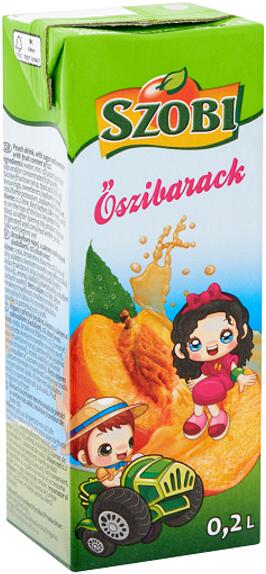 Szobi őszibarack üdítőital 0,2L Hivatalos magyarországi forgalmazótól. Összetevők: Ivóvíz, Fruktóz-glükózszörp, Őszibaracklé min. 12% (gyümölcsvelőből és/vagy gyümölcspüré sűrítményből), Étkezési sаv (citromsav), Aroma, Édesítőszerek (nátrium-ciklamát, aceszulfám-K, szukralóz), Gyümölcstartalom min. 12% Tápértékre vonatkozó adatok: Átlagos tápérték