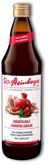 Dr. Steinberger Bio Gránátalmalé Drs 750 ml100%-os, első préselésből kinyert direktlé. Kiváló termőterületekről származó, gondosan válogatott, nap érlelte gránátalmát közvetlenül a betakarítás után kipréselik, kíméletesen feldolgozzák és palackozzák. A végeredmény egy prémium minőségű, tiszta gránátalmalé, amely a gyümölcs természetes összetevőinek telj