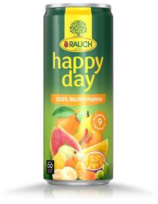 Happy Day 100%-os multivitamin fémdobozban A Happy Day a gyümölcsök teljes skáláját kínálja, kezdve a klasszikusoktól, - mint a narancs és az alma -, egészen a különleges és egzotikus gyümölcsökig, mint az eper, a rebarbara, a mangó, a gránátalma és a pink guava. Ajánljuk finom reggeli mellé vagy koktélba. -fogyasztás előtt felrázandó -űrtartalom: 0,33 lGyártó/első