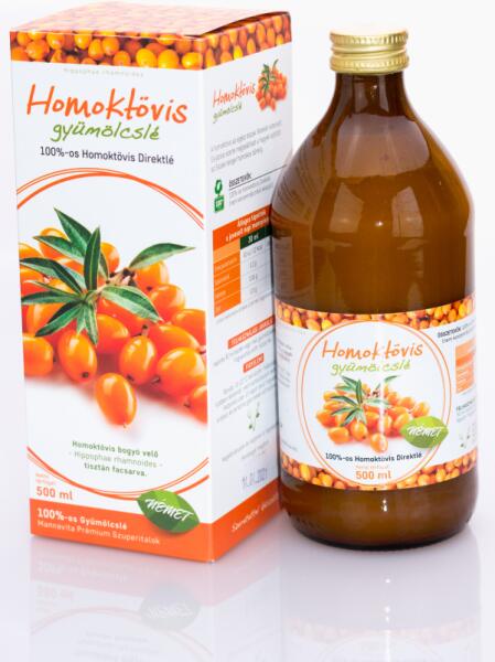 Homoktövis gyümölcslé - 100%-os Homoktövis Direktlé - Homoktövis bogyó velő (Hippophae rhamnoides) tisztán facsarvaA homoktövis magas antioxidáns tartalmú immunrendszer-erősítő gyógynövény. Nem csak a már meglévő betegségek ellen ajánljuk fogyasztani, hanem mindennapos üdítőként és ételként is, hiszen nagyon fontos szerepe van a betegségek megelőzésében , a preve