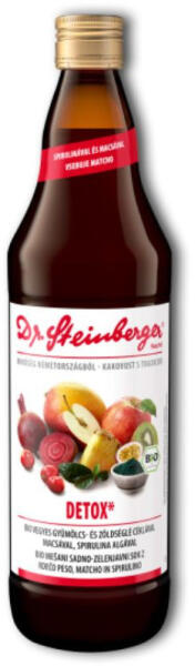 Dr. steinberger bio detox ital 750 ml Hat értékes gyümölcsből, céklából, macsából és spirulina algából készül ez a különleges és magas minőségű direktlé. Rendszeres fogyasztása hozzájárul a napi ajánlott zöldség és gyümölcsbevitel eléréséhez. Az acerola rendkívül magas C vitamin tartalma, valamint az antioxidánsokban kimagaslóan gazdag japán eredetű macsa (p