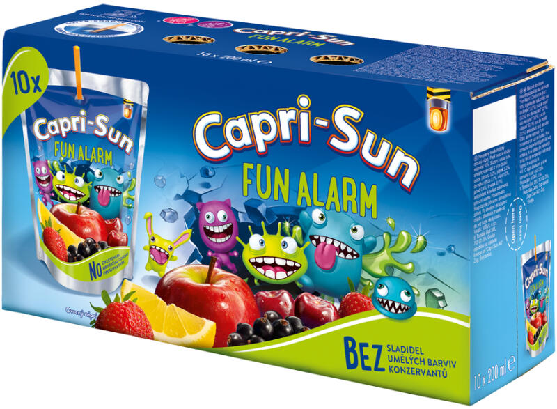 Mit szeretnek inni a kis szörnyek? Természetesen van saját gyümölcskeveréke alma, fekete ribizli, meggy, eper és lime ízével. A Capri-Sun szörnyriasztóval - a szomjúságnak és az unalomnak esélye sincs! Capri-Sun gyümölcsital. A csomag 10 db 200 ml térfogatú italt tartalmaz. A tasak formájú csomagolás termofóliával van ellátva, aminek köszönhetően a tartalom hosszabb ide