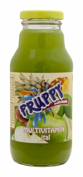 Fruppy multivitamin ital zöld 330 ml Energia 184(kJ)/ 43 (kcal) zsír: 0,0 g amelyből telített zsírszavak: 0,0 g Szénhidrát: 10,0 g amelyből cukor: 8,5 g Fehérje: 0,1 g Só: 0,03 g Rost: 1,5 g A-vitamin: 120,00g (15% NRV)* E-vitamin: 1,80 mg (15% NRV)* C-vitamin: 12,00 mg (15% NRV)* B1-vitamin: 0,17 mg (15% NRV)* B2-vitamin: 0,21 mg (15% NRV)* Niacin: 2,4 mg (15% NRV)* B6-vitamin: 0,21 mg