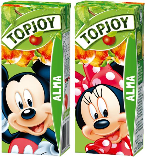 Topjoy alma 0,2l Hivatalos magyarországi forgalmazótól. Leírás: A Topjoy 0,2 L-es italai szívószállal ellátott kartondobozban, 30%-os gyümölcstartalommal, tartósítószer nélkül készülnek. Tápértékre vonatkozó adatok: Átlagos tápérték 100g termékben: Energia: 167 kJ/39 kcal Zsír: 0g amelyből telített zsírsavak: 0g Szénhidrát: 9,6g amelyből cukrok: 9,6g Fehérje: 0g