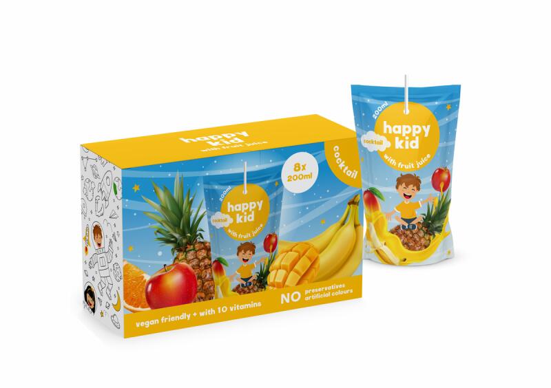 Happy Kid Gyümölcs koktél ital 200ml Hivatalos magyarországi forgalmazótól. Leírás: Gyümölcs koktél ital Narancs, Alma, Ananász, Mangó, Banán Kiszerelés: 200ml