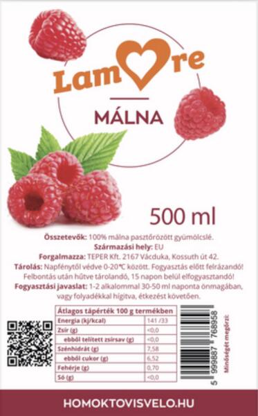 A málnalé minden hozzáadott anyagtól mentes, tartósítószert nem tartalmaz. Gyümölcsleveink kíméletes eljárással pasztőrözve készülnek, hogy az a lehető legtöbb vitamin és beltartalmi értékét megőrizze. Felbontás nélkül a minőség megőrzési idő 1 év. Felbontás után hűtőben 15 napig megőrzi minőségét. Felbontás és fogyasztás előtt felrázandó! Fedezze fel
